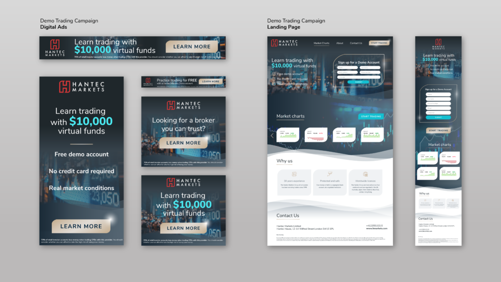 The brand’s new design system became the foundation for future marketing initiatives, allowing regional teams to work independently while maintaining a unified identity. The revitalized image positioned Hantec Markets as a modern, trustworthy player in the global trading space—one that speaks clearly, visually, and confidently to its clients.